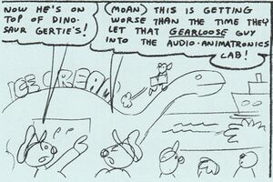 Die Geschichte steckt voller Bezüge auf den Disney-MGM-Studios-Themenpark. Gleich auf Seite zwei wird eine akkurate Karte des Parks gezeigt, die vier Locations darstellt: Das Production Center, Min and Bill's Dockside Diner, Dinosaur Gertie's Ice Cream of Extinction und das Epic Stunt Theater.[3]