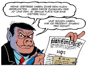 Shandy Schofel fälscht den Vertrag (aus Der König des Klondike) (© Egmont Ehapa)