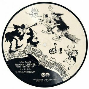 Für das Schallplatten-Set „Silly Symphony Songs selected from Walt Disney's Mickey Mouse and Silly Symphony Motion Pictures“ mit Liedern, die sich mit Micky-Maus- und Silly-Symphony-Cartoons befassen, beauftragte die Plattenfirma Victor Frank Luther. Am 3. November 1933 nahm er die Lieder „Mickey Mouse And Minnie’s In Town“, „Dance of the Bogey Men“, „Lullaby Land of Nowhere“ und eine Woche später die Lieder „Who's Afraid Of The Big Bad Wolf“ und „In A Silly Symphony“ auf. Durch eine lange Nachbearbeitung erschien das Set erst 1934.[5] Die zweiseitig bespielten Platten erschienen als besonderes Set mit Bildaufdruck: „Who's Afraid Of The Big Bad Wolf“ wurde auf zwei Seiten derselben Schallplatte aufgeteilt, „In A Silly Symphony“ und „Mickey Mouse And Minnie’s In Town“ waren zwei Seiten derselben Platte und eine weitere Platte teilten sich „Lullaby Land of Nowhere“ und „Dance of the Bogey Men“. Drei der insgesamt fünf Lieder stammen aus Cartoons: „Who's Afraid Of The Big Bad Wolf“ stammt aus „Die drei kleinen Schweinchen“ (Three Little Pigs, 1933), „Lullaby Land of Nowhere“ und „Dance of the Bogey Men“ stammen aus Lullaby Land (ebenfalls 1933). Die drei Platten wurden ursprünglich in Einzelhüllen mit einer Außenhülle für das komplette Set herausgegeben.[6] Durch den eher schlechten Verkauf des Platten-Sets zählt es heute zu einer der seltensten Disney-Schallplatten.[5]