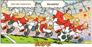 Diese Geschichte ist eigentlich die Fortsetzung derjenigen, die letztes Jahr erschien, aber da die EM bekanntlich verschoben wurde, musste nun eine neue Geschichte her und wie schon in LTB 533 fungieren Zemelo und Ferraris als Autor, respektive Zeichner. Im Vergleich mit der Geschichte in Nummer 533 muss ich sagen, dass mir die besser gefallen hat (siehe auch die entsprechende Rezension). Zu unglaubwürdig ist der Wechsel von Max Marter vom netten Trainer zum gefürchteten Quäler und wieder zurück, zu schlecht finde ich ihn von Ferraris in Szene gesetzt (der ansonsten ganz passable Arbeit abliefert) und die Moral der Geschichte ist noch durchschaubarer als die des Vorgängers und macht die Geschichte wenig interessant. Und Episode 3 der Quälerei sollte eigentlich in Skandinavien spielen (laut dem Plan auf Seite 14) und nicht an einem Sandstrand mit Palmen! Nicht überzeugendes Fußball(un)vergnügen und reines Mittelmaß. --McDuck (Diskussion) 23:48, 22. Mai 2021 (CEST)