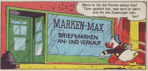 Donald, chronisch klamm, schnorrt mal wieder bei den Kindern. Die hatten aber gerade schon die wertvollste Marke ihrer Briefmarkensammlung, den „Schwarzen Fünfer“ von den Bambambas, verkauft, um ihrem Altvorderen unter die Arme zu greifen. Da eröffnet sich für Donald urplötzlich doch eine Einnahmequelle: Er soll zusammen mit Dussel das Archiv von Notar Griesebeck sortieren. Beim Aufräumen stößt Donald in einem Brief-Konvolut auf eine Zwanziger von den Bambambas. Er ist froh, vom Briefmarkenhändler, dem „Marken-Max“, 20 Taler für das Exemplar zu bekommen. Was er nicht weiß: Die Zwanziger von den Bambambas ist eine der seltensten Marken überhaupt, die mit Millionen von Talern aufgewogen wird. Dussel merkt derweil, dass all die Briefe des Konvoluts mit solchen Zwanzigern beklebt sind, und wendet sich damit an einen passionierten Sammler: seinen Onkel Dagobert! Auch der ist zunächst gierig auf die Marke, doch als er von Dussel erfährt, in welch rauen Mengen die Marke offenbar existiert, fasst er einen anderen Plan: Er weiß, dass Klaas Klever von Marken-Max beliefert wird und sich am nächsten Tag auf einer großen Briefmarkenausstellung gegen Dagoberts Sammlung eine Auszeichnung für die seltenste Briefmarke abholen will. Und so lässt er auf der Veranstaltung seinen Rivalen voll auflaufen: Klevers stolze Präsentation seiner Zwanziger von den Bambambas kontert Dagobert mit einem Paket der mit der gleichen Marke beklebten 500 Briefe, die er auf dem Kopf des furchtbar blamierten Klever niederregnen lässt.