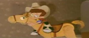 Dabei wird die Stromverbindung zum Fernseher unterbrochen und alle Erfolge im Spiel gehören, damit der Vergangenheit an. Verärgert schiebt er den Fernseher zurück und steckt ihn wieder ans Stromnetz. Als er seine Lasergun holen möchte, stößt er auf ein altes Bild von ihm und dem Schaukelpferd und beschließt mit ihm wieder zu spielen und durch die Prärie zu reiten.