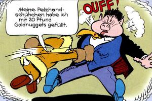 - ↑ Thomas Andrae und Geoffrey Blum: Geschichten vom Goldrausch. Teil 2: Das letzte große Abenteuer. Übersetzung von Johnny A. Grote. Barks Library Special Onkel Dagobert 18, S. 52.