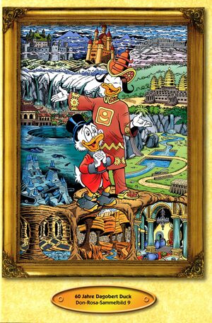 Die Ausgabe enthält auf der letzten Seite ein Sammelbild. Abgebildet ist das Gemälde „Scrooge McDuck's Lost Realms“ von Don Rosa. (siehe → Abschnitt Don-Rosa-Gemäldegalerie) | |||||