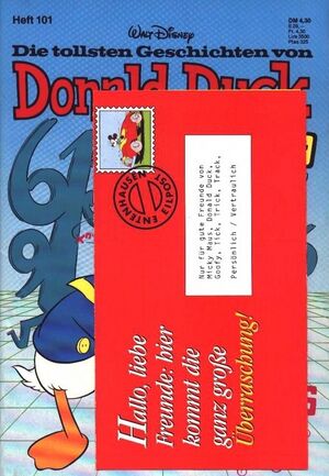 [[Datei:DDSH 101 Abo-Umschlag.jpg|thumb|right|Der beigelegte Abo-Umschlag, voradressiert an [[Micky Maus]], [[Donald Duck]], [[Goofy]] und [[Tick, Trick, Track]] (© Egmont Ehapa)]] | |||