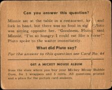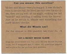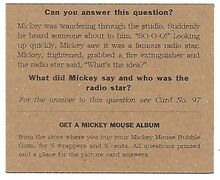 Für fünf Kaugummi-Packungen und fünf US-Cents konnte man sich ein Mickey Mouse Picture Card Album holen, in dem man die Kaugummi-Karten sammeln konnte. Die ersten 48 Karten kamen ins erste Album, Karten 49 bis 96 ins zweite.