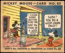 | 083 | I Churn Some Butter Every Day. Don't You Think I'm a Good Scout? Sure! You Do a Good Churn Daily! | Minnie was churning butter, Mickey was looking on. "I churn some butter every day," said Minnie. "Don't you think I'm a good scout?" What did Mickey answer? "Sure! You do a good churn daily!" |