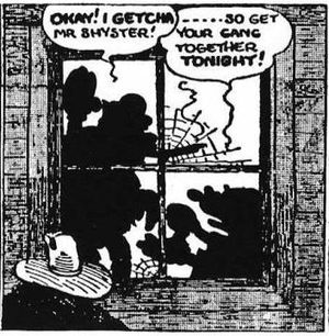 Kater Karlos Comic-Debüt erfolgte am 12. April 1930, als sich im Zeitungsstrip "Mickey Mouse in Death Valley" / "Micky Maus im Tal des Todes" hinter einem Fenster erstmals seine Silhouette abzeichnete. Karlos erster Zeichner in diesem Medium war [[Win Smith]], der noch während derselben Geschichte durch [[Floyd Gottfredson]] ersetzt wurde. | Kater Karlos Comic-Debüt erfolgte am 12. April 1930, als sich im Zeitungsstrip "Mickey Mouse in Death Valley" / "Micky Maus im Tal des Todes" hinter einem Fenster erstmals seine Silhouette abzeichnete. Karlos erster Zeichner in diesem Medium war [[Win Smith]], der noch während derselben Geschichte durch [[Floyd Gottfredson]] ersetzt wurde. | ||