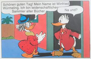 Die Bücher gehören Gustav und sie bringen diese zu ihm zurück, als Donald diese Tatsache entdeckt ist es zu spät. In seiner Not verkleidet er sich mehrfach und wird jedes Mal von ihm abgewiesen. Gerade aus diesem Grund bemerkt Gustav schließlich die Briefe und beginnt diese zu lesen. Dabei fällt ihm auf das diese Briefe von ihm sind.