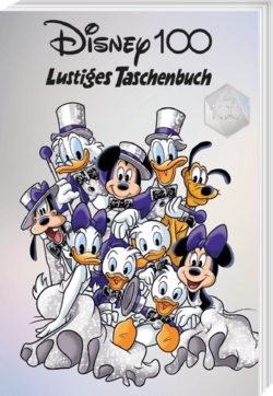 Disney 100 Lustiges Taschenbuch: Jubiläumsausgabe erschien am 14. September 2023 von Egmont Ehapa als Teil der Hundertjahrfeier der Walt Disney Company. Das Cover stammt von Davide Cesarello und Michela Frare.