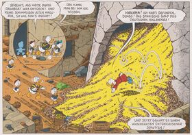 Als Dagobert das erkennt, hält ihn natürlich nichts zurück, aber er beruhigt sich und lässt den Pima auch ihre Mine. Also wieder mal eine Schatzsuche ohne wirklichen Erfolg – wobei, eigentlich nicht, „weil das, was er wirklich liebt, die Spannung eines weiteren großen Abenteuers ist. Und der Ruhm, Amerikas größten verlorenen Schatz gefunden zu haben“ (Zitat Trick)… Und ganz nebenbei haben die Pima ihm auch noch satte 10 Millionen Mäuse Finderlohn zugesteckt…