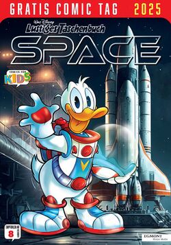 Das kostenlose Heft Lustiges Taschenbuch Space erschien am 10. Mai 2025 im Zuge des Gratis-Comic-Tags unter dem Label von Egmont Ehapa Media. Damit wurde für die Nebenreihe LTB Space geworben.