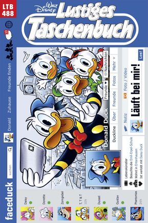 Auf dem Buchcover von LTB 488 ist Donalds Faceduck-Seite abgebildet, die man dann auch in der Geschichte Läuft bei mir! zu sehen bekommt.