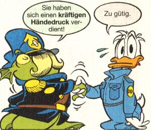 Am Ende ist es mal wieder Donalds ungestüme Schusseligkeit, die für ein Debakel sorgt. Zurück auf seinem Heimatplaneten hat Donald bereits einen Schuldigen ausgemacht, der von Beginn an für die Misere verantwortlich ist.