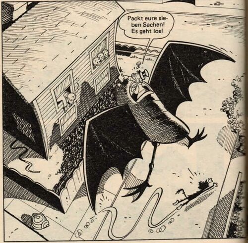 „Flapp! Flapp! Flapp! Flapp!“ (Geräusch der hochtechnischen Fledermaus-Maschine)