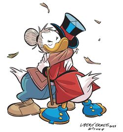 Libero Ermetti wurde 1981 in Valdagno in Venetien geboren, wo er noch heute wohnt. Er hatte schon immer eine große Leidenschaft für Disney-Comics und zeichnet Enten, so lang er sich erinnern kann.[2] Schon in seiner Jugend hatte er Kontakt mit professionellen Comiczeichnern, was ihm erlaubte, früh die Grundlagen der Kunst zu erlernen, die er dann später studierte.[1] Nach einigen Etappen in verschiedenen Comic-Projekten landete er dann 2013 über einen Kontakt zu Silvia Ziche beim Disney-Comic. Seine erste Geschichte, Rappende Räuber (LTB Crime 5) erschien Ende 2014 im Topolino, seitdem zeichnete er etliche andere Geschichten mit den Ducks und den Mäusen, unter anderem das Doppelwerk Die Erzählungen von Edgar Allan Duckoe und Die Ermittlungen von Auguste Duckpin (Story von Riccardo Secchi, LTB Crime 1) oder seit 2020 einige Geschichten rund um die Area 15. Nach eigener Aussage ist sein Stil vor allem von Giorgio Cavazzano inspiriert, aber auch etwa von Francesco Guerrini, Don Rosa oder Andrea Freccero.[2]