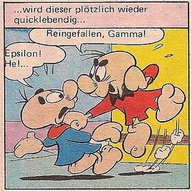[[Datei:Epsilon und Gamma.jpg|280px|mini|rechts|Gamma und sein Rivale Epsilon (© Egmont Ehapa)]] | |||