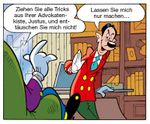 Er ist der Anwalt von Fuchske und an der Intrige zum Kauf des Entenhausener Kuriers beteiligt.