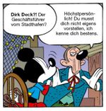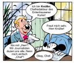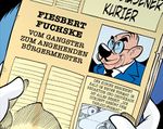 Er ist der Herausgeber des Entenhausener Kuriers. | Er ist der Herausgeber des Entenhausener Kuriers. | ||