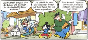 Ok, das ist wirklich die mit Abstand abstruseste Romantik-Geschichte, die ich in letzter Zeit gelesen habe. Insgesamt ist diese Geschichte einfach nur seltsam. An ihr stimmt so gar nichts, die Handlung ist an den Haaren herbeigezogen und strotzt nur so vor Logiklöchern und Diskontinuitäten mit etablierten Fakten. Vor allem aber werden die Charaktere hier geradezu demonstriert: Allen voran Gamma, der anscheinend so gut wie jede seiner früheren Charaktereigenschaften verloren hat und dessen Dämlichkeit geradezu lächerlich ist, dazu passt es dann auch, dass er sich am Ende in einen Rasenmäher verliebt. Auch Micky gibt hier kein gutes Bild ab, immerhin kommt so Minnie in eine stärkere Rolle. Insgesamt steht diese Geschichte aber leider auch sinnbildlich dafür, was momentan bei der Zusammenstellung der LTBs schiefläuft. In Italien werden im Topolino seit einigen Jahren vermehrt längere und komplexere Geschichten abgedruckt. Egmont weigert sich aber bisher stur, das Lustige Taschenbuch damit zu füllen und setzt weiterhin auf kurze Geschichten – die gehen aber logischerweise irgendwann aus wenn sie in Italien nun in den Hintergrund rücken und daher muss man immer tiefer in die Archive greifen – herausgefischt werden dann Machwerke wie diese, die man lieber weiter hätte verstauben lassen sollen. Bewertung Schlecht. D.U.C.K. (Diskussion) 11:37, 13. Apr. 2022 (CEST)