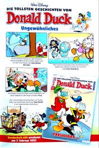 Ein schönes winterliches Cover. Den Schnee hätte ich auch gern. Blättern wir uns mal durchs Heft – es soll insgesamt 11 Geschichten beinhalten. Ziemlich viel für 57 Seiten Comics. Damit gibt es durchschnittlich nur 5,2 Seiten pro Story. Aber das muss ja nichts heißen! Glückstaler (Diskussion) 15:54, 1. Jan. 2023 (CET)