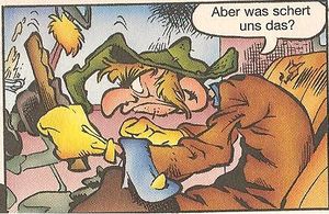 Ist ein Bösewicht, der aus einem Gefängnis ausbricht, Konrad Kiwi entführt und Schrecken in Entehausen verursacht. Er arbeitet in der Kanalisation.
