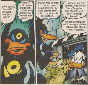 Dabei handelt es sich um eine Holoperson, die sich Donald Duck überstülpt. Er arbeitet nicht mehr im Ducklairtower und so muss er sich eine List einfallen lassen, um das Gebäude weiterhin betreten zu können.