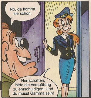 Sie ist ein Androide und für die Zeitpolizei tätig. Sie ist eine Verbündete von Phantomias und unterstützt ihn regelmäßig bei seinen Abenteuern. Um nicht aufzufallen, arbeitet sie als Reporterin bei Kanal 00.