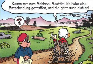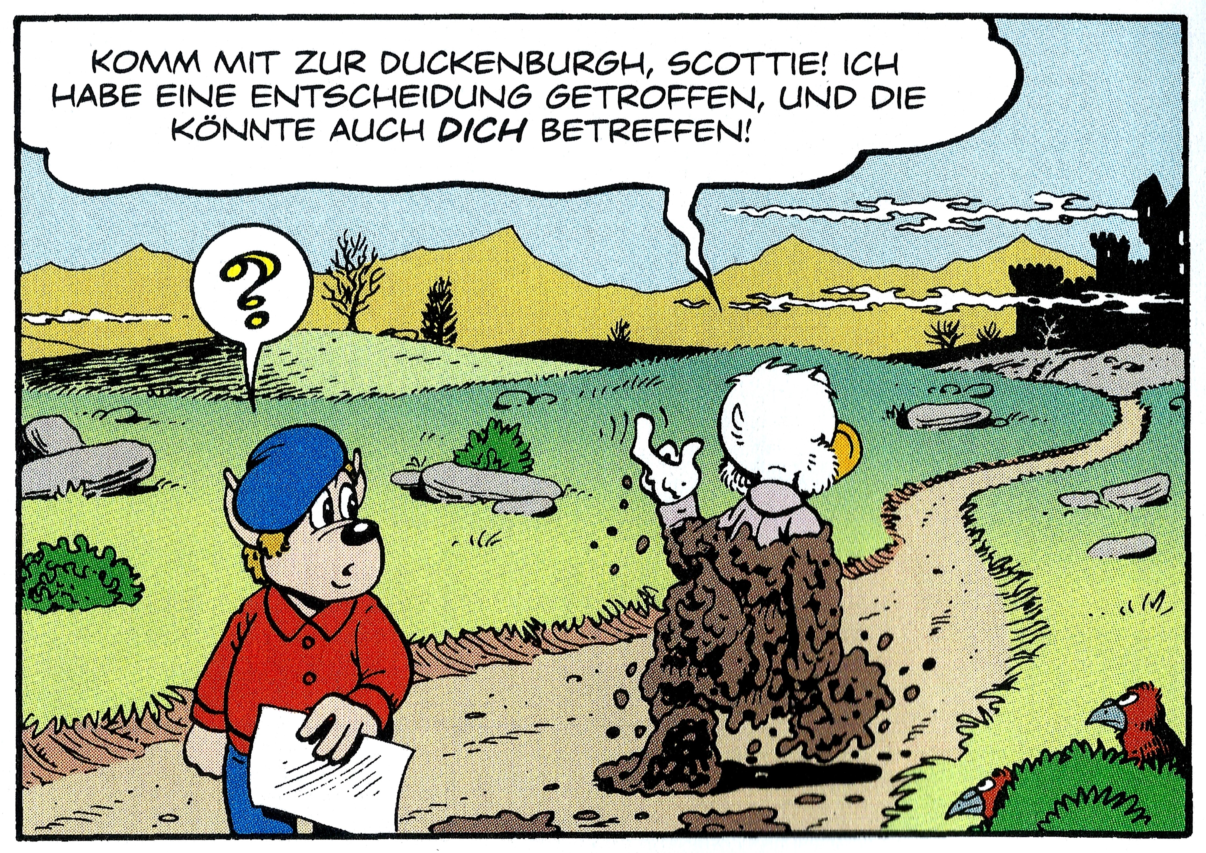 Scotty, gleich wird Dagobert ihm die Duckenburgh anvertrauen. Der Milliardär im Hochmoor (Kapitel 9 von Sein Leben, seine Milliarden), Don Rosa